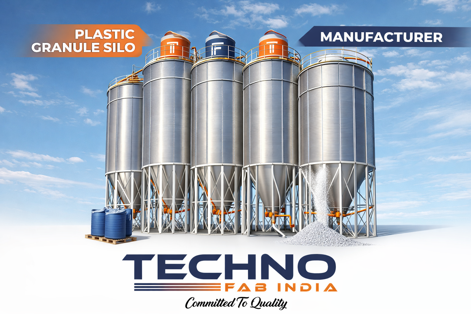 Technofab India delivers durable, efficient, and customized silo systems for plastic granules and other bulk materials.
